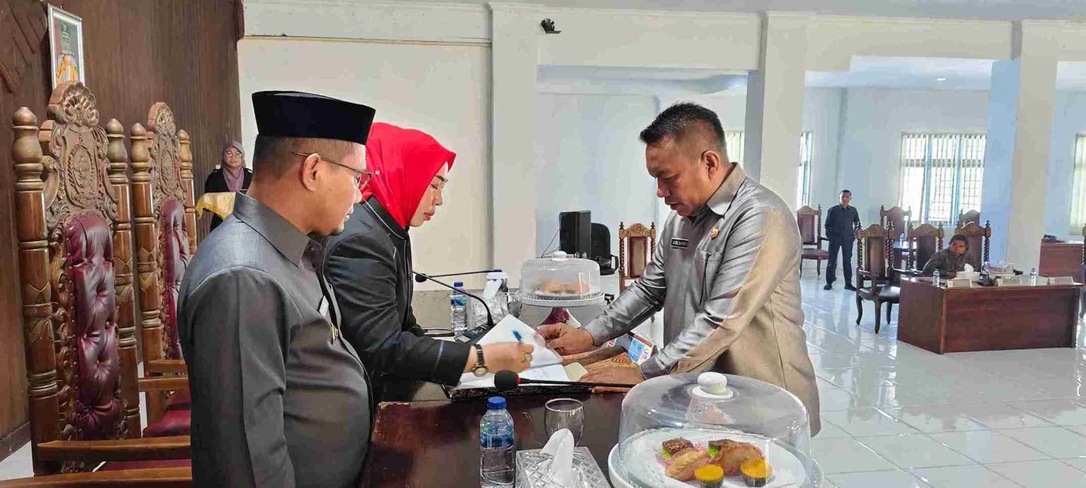 Penandatanganan berita acara serah Terima rekomendasi DPRD terhadap Laporan Keterangan Pertanggungjawaban (LKPJ) Bupati Tahun Anggaran 2025 ke Pemerintah Daerah Kabupaten Buton Utara.